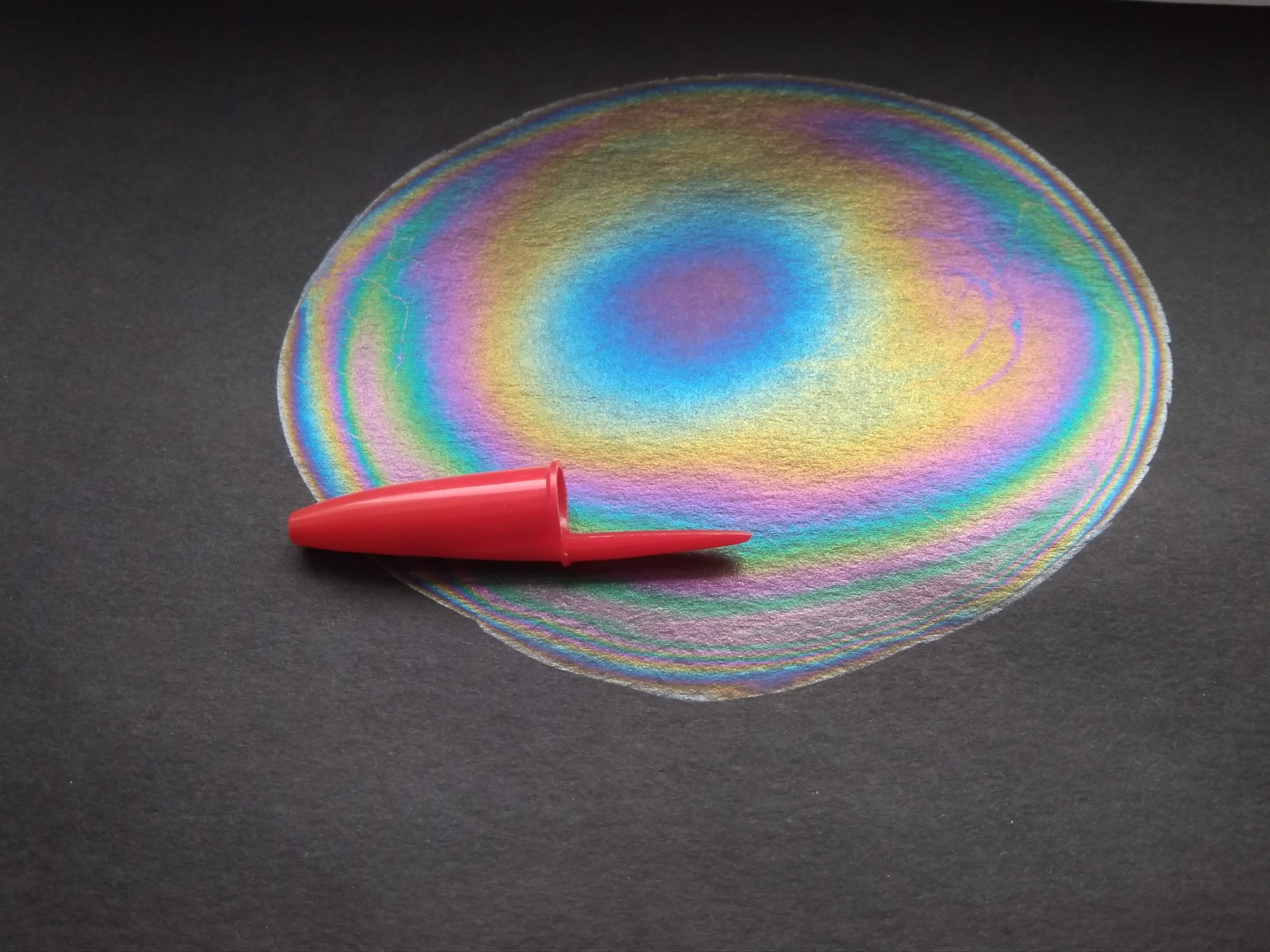 Kromě focení spekter si ještě každý stihl vyrobit jednoduchou pomůcku pro demonstraci interference světla pomocí průhledného laku na nehty. Výsledek můžete obdivovat na poslední fotografii.